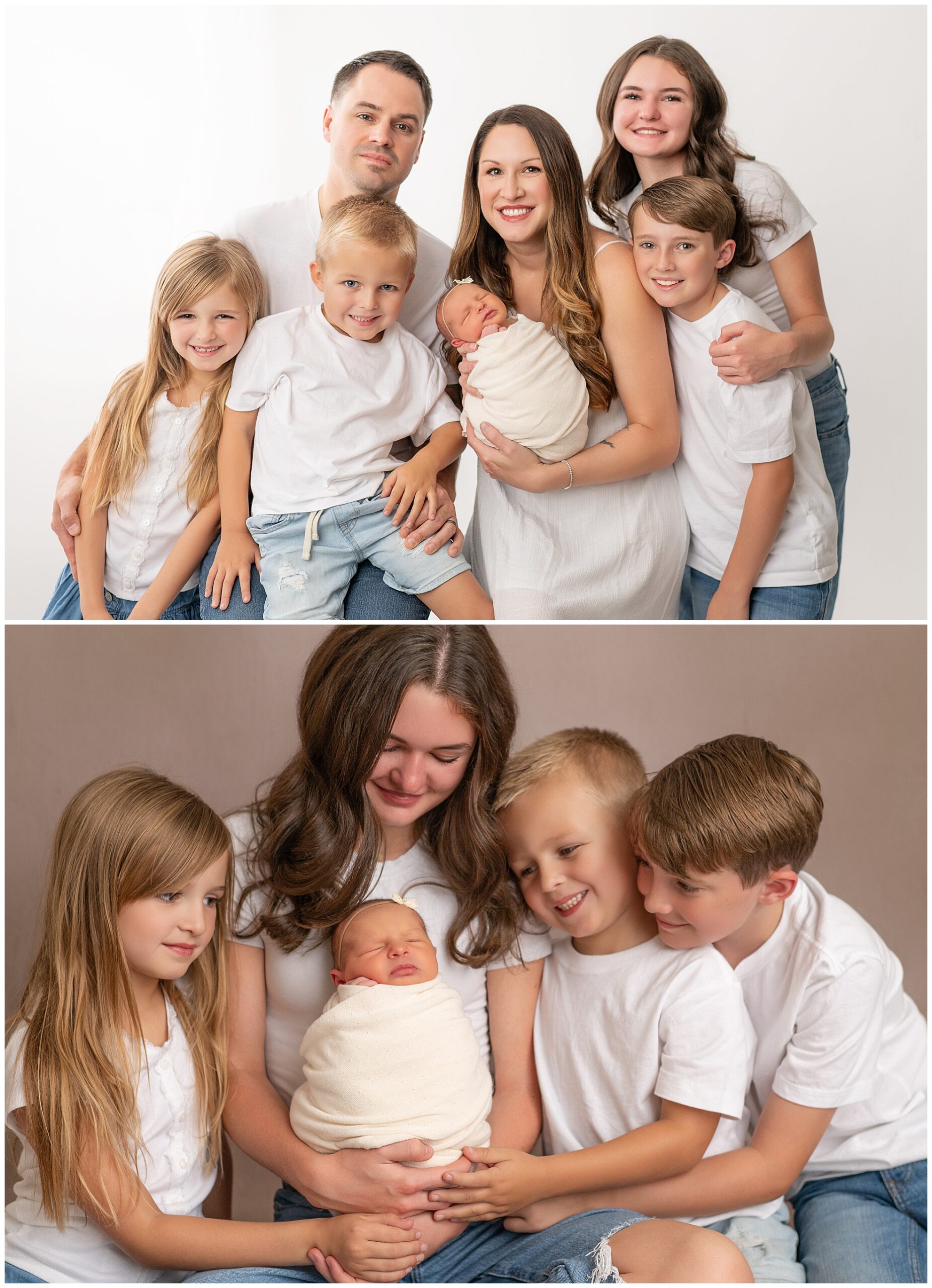 Newborn Sophia came to the studio today at just 9 days new 🍓 She was the sweetest, sleepiest little doll. Big brother Blake was here for his newborn photos 7 years ago, and now he’s proudly holding his baby sister. Time truly flies in the blink of an eye ✨